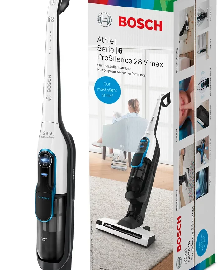 جارو شارژی ایستاده بوش مدل BCH86SIL1 از سری Athlet ProSilence، دستگاهی بیسیم است که بدون اتصال به برق کار میکند. موتور آن با قدرت 145 وات، عملکرد قوی ارائه میدهد. سرعت جارو در سه حالت تنظیمپذیر است: حالت اول برای کارهای سبک با حداکثر زمان استفاده، حالت دوم برای تمیزکاری روزمره با زمان متوسط، و حالت سوم برای آلودگیهای سخت با زمان کوتاهتر. در بخش پارویی، برسی مکانیکی تعبیه شده که برای پاک کردن سطوحی مانند موکت، پارکت و فرش مناسب است و با سرعت چرخش حدود 5000 دور در دقیقه، زبالهها را به داخل مخزن 0.9 لیتری هدایت میکند. باتری 28 ولتی Li-Ion پس از شارژ کامل در 3 تا 6 ساعت، تا 60 دقیقه کارکرد مداوم فراهم میآورد و نشانگری برای نمایش سطح شارژ روی بدنه وجود دارد. طراحی مدرن و انعطافپذیر با ارتفاع 1160 میلیمتر، عرض 285 میلیمتر، عمق 185 میلیمتر و وزن 3.3 کیلوگرم، اجازه میدهد بدون خم شدن به جاهای مختلف دسترسی پیدا کنید. کلید تنظیم مکش روی دسته قرار دارد تا بر اساس سطح کثیفی تنظیم شود. فیلتر بهداشتی هوای خروجی را پاکیزه میکند و با کثیف شدن، از طریق LED هشدار میدهد. سیستم Easy Clean امکان جداسازی و تمیز کردن آسان برس و شلنگ را فراهم میکند. ویژگیهای دیگر شامل طراحی ارگونومیک، کنترل الکترونیکی قدرت، قابلیت ایستادن مستقل، تکنولوژی SensorBagless بدون کیسه، سیستم ProSilence برای کاهش صدا در عملکرد بالا، RotationClean برای تمیزکاری خودکار فیلتر، و SmartSensor Control است. نقاط قوت آن شامل سیستم Easy Clean، کلید تنظیم مکش، نشانگر شارژ باتری، موتور LongLife با عمر طولانی، و هشدار LED برای فیلتر است.