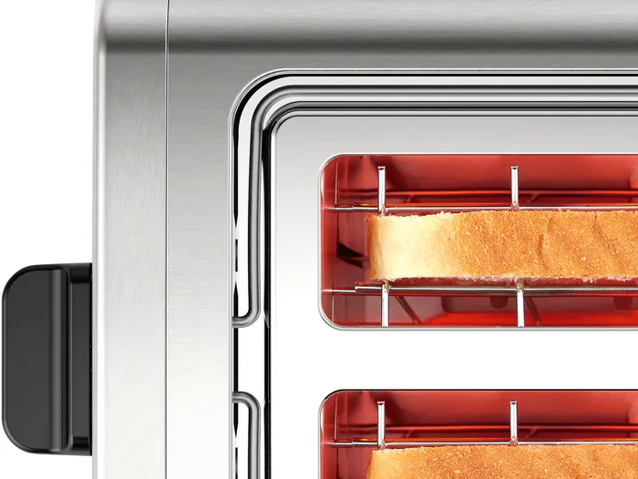 این دستگاه با توان ۹۷۰ وات، به سرعت گرم میشود و امکان برشته کردن نان را در کمترین زمان ممکن و به صورت یکنواخت فراهم میآورد. دارای دو درگاه پهن (Two-Slot) است که برای انواع مختلف نان تست، از برشهای نازک تا ضخیم، و حتی نان شیرینی یا باگت کوچک مناسب است.