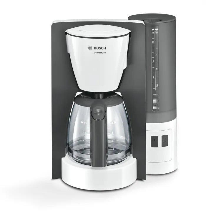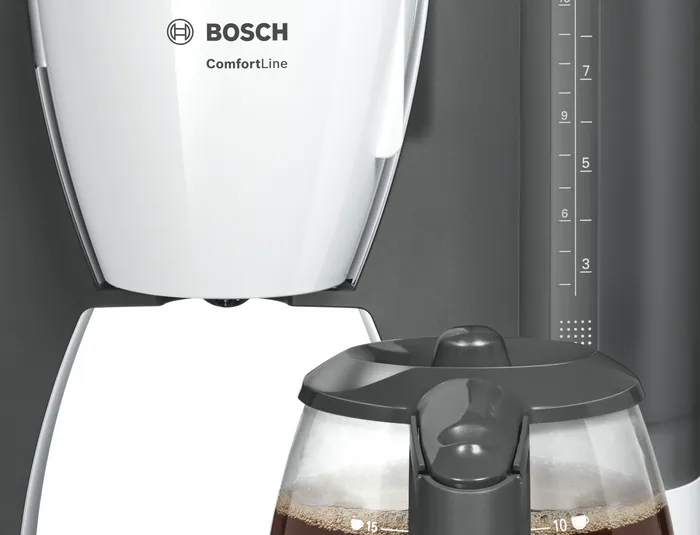 «بوش» (Bosch)، یک شرکت بزرگ آلمانی است که از سال 1886 میلادی آغاز به کار کرده است. این شرکت در زمینههای مختلفی از جمله ساخت ابزار و موتورهای صنعتی، سامانههای امنیتی، لوازم برقی خانگی و غیره، فعالیتهای گستردهای دارد. قهوهساز بوش مدل TKA6A041، یک محصول زیبا و ساده است که با ابعاد کوچکش، کارکردن با آن بسیار ساده است. از قابلیتهای این قهوهساز میتوان به دکمهی Aroma+ برای انتخاب رایحهی قهوه، سیستم قطعکن خودکار با امکان انتخاب زمان مورد نظر، فیلتر قابل تعویض، ظرفیت مخزن آب 1.25 لیتری که میتواند برای ۱۰ تا ۱۵ فنجان قهوه تولید کند و سیستم ضدچکه اشاره کرد. این محصول که وزن آن به ۱.۸ کیلوگرم میرسد، میتواند بهسرعت یک قهوهی مناسب با کیفیت بالا برای کاربران فراهم کند. همچنین برنامهای به نام EasyDescale 3 دارد که رسوبزدایی میکند و میتوان میزان سختی آب را انتخاب کرد. لازم به ذکر است که محفظهی اصلی این قهوهساز قابل جدا شدن است. این محصول نگهداری آسانی هم دارد و دارای محفظهی مخصوص برای جمعکردن سریع کابل است. این موضوع میتوان استفاده از این محصول را بسیار آسانتر کند.