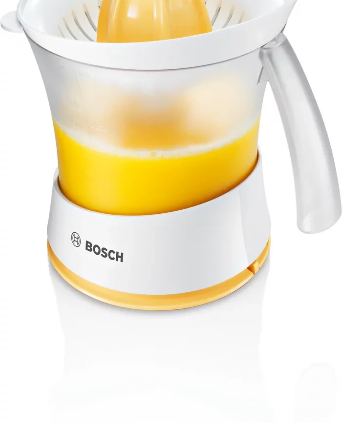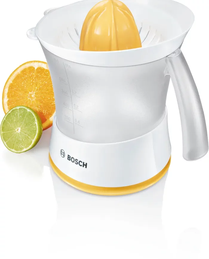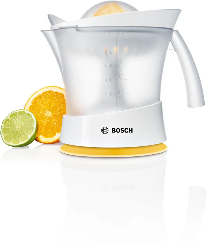 آب مرکبات گیری بوش مدل MCP3500 دستگاهی کوچک و کاربردی برای آبگیری از مرکبات مختلف با ظرفیت 0.8 لیتر، توان 25 وات، تنظیم پالپ و چرخش دو طرفه است. بدنه پلاستیکی مرغوب بدون BPA، قابل شستشو در ماشین ظرفشویی و دارای محفظه سیم. این محصول امکان تهیه آب میوه با سطوح مختلف تفاله را فراهم می کند که دارای دسته کانتینر با طراحی ارگونومیک است. مواد بدنه، پارچ، فیلتر و مخروط همه از پلاستیک مرغوب که عاری از BPA در بخش های پلاستیکی در تماس با مواد غذایی ساخته شده اند. مزایای آب مرکبات گیری MCP3500 شامل آب مرکبات گیری جمع و جور با ظرف آب بزرگ قابل جابجایی و مخزن تفاله جداگانه برای استخراج بهینه آب، تنظیم پالپ برای کنترل مقدار تفاله در آب، ظرف آب قابل جابجایی بزرگ با ظرفیت 800 میلی لیتر و مقیاس اندازه گیری، قابلیت شستشو قطعات در ماشین ظرفشویی، پوشش محافظ گرد و غبار برای جلوگیری از میکروبات اطراف محیط به داخل آبمیوه، همچنین می توان تفاله میوه را به لطف این دستگاه اندازه گیری کرد. عملکرد آسان این محصول و تنها با فشار دکمه میتوان آب میوه را گرفت. این مدل به گونه ای طراحی شده است که می توانید انواع مرکبات ریز را آبگیری کرده و آبمیوه آن را نوش جان کنید. آب مرکبات گیری بوش MCP3500، همچنین محفظه ای برای جمع کردن سیم دارد که می توانید پس از اتمام کار سیم را به راحتی جمع کنید، تا از بهم ریختگی و بی نظمی فضای خود جلوگیری کنید. دارای یک ظرف شفاف و درجه بندی شده است که به شما امکان می دهد حجم داخلی را ببینید، که با فشار دادن مخروط خاموش می شود. با توجه به کیفیت و قیمت آب مرکبات گیری BOSCH MCP3500، یکی از مدلهای بسیار کارآمد است. این محصول پرفروش ترین آب مرکبات گیری بوش در بازار است که چندین سال است بدون هیچ تغییری این مدل را شرکت بوش تولید و توسط کشور اسلوونی ساخته می شود. همچنین این محصول همچنان در لیست پرفروش ترین آب مرکبات گیری ها در جهان است. این دستگاه با توان 25 وات با ظرفیت 800 میلی لیتر یکی از بهترین مارک های آب مرکبات گیری دنیاست. به طور کلی، باید بگوییم اگر عملکرد برای شما مهم است و شما به دنبال یک ظاهر لوکس نیستید، کیفیت و قیمت آب مرکبات گیری بوش 3500 بسیار مناسب است.