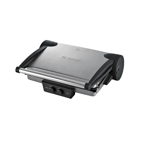 گریل بوش مدل TFB4431V دارای طراحی خاص بوده و جز وسایل برقی آشپزخانه محسوب می شود که قادر است انواع مختلف غذاها را آماده و گریل کند. رنگ این دستگاه برقی پرکاربرد به رنگ نقره ای موجود بوده و دارای توان 2000 وات است که توسط کشور یونان ساخته و طراحی می شود. مهندسین نخبه و با تجربه شرکت بوش در طراحی این دستگاه یک ایده ناب و منحصر به فرد را اجرایی کرده اند. ایجاد لولاهای متحرک در گریل بوش مدل TFB4431V باعث شده است تا بتوانید هر نوع مواد غذایی از کم حجم ترین تا پرحجمترین را به راحتی سرخ کنید. میزان پخش حرارت در این دستگاه کاملا همگن بوده و به هیچ وجه باعث سوختن قسمتی از غذا نمی شود. استفاده از صفحات آلومینیومی از نوع فشرده در ساخت گریل بوش موجب افزایش پخش حرارت در کل ظرف شده و به دلیل دارا بودن صفحات بزرگ به ابعاد 24 در 33 قادر است چندین نوع مواد غذایی را به سرعت گریل کند. همچنین بعد از هر بار استفاده و آماده سازی انواع باربیکیو می توانید به راحتی ظروف را از جای خود در آورده و آن را بشویید. با استفاده از گریل بوش مدل TFB4431V قادر خواهید بود انواع نان ساندویچی، پیتزا، استیک و … را در عرض مدت زمان کوتاه با حرارت بالا و مناسب آماده کنید. میزان دما به راحتی قابل تنظیم بوده و می توانید مقدار آن را توسط نشانگر ببینید. همچنین نگهداری آن در آشپزخانه به فضای کمی نیاز دارد، زیرا در حالت عمودی نیز قابل نگهداری است. گریل بوش مدل TFB4431V دارای مزیت های بسیار زیاد دیگری نیز می باشد. استفاده از دو صفحه بزرگ نچسب باعث شده است تا بتوانید از آن برای گرم کردن و فشردن غذا، باربیکیو استفاده کنید. همچنین دو صفحه قابلیت باز شدن تا 180 درجه را نیز دارا می باشد. که در حالت 180 درجه شبیه به ماهیتابه عمل خواهد کرد. صفحات گریل بوش مدل TFB4431V طوری طراحی شده اند که موجب جذب روغن به مواد غذایی نشده و غذای کاملا سالم و رژیمی را به شما تحویل می دهد. همچنین بر روی هر صفحه از سیستم های کنترلی برای دما استفاده شده تا بازدهی کار در هنگام گریل کردن افزایش پیدا کند. ویژگی بسیار خاص این دستگاه که توسط طراحان خوش ذهن شرکت بوش ایجاد شده است، زاویه دار کردن صفحات و دادن کمی شیب به آن می باشد. وجود یک انحراف کوچک نه تنها باعث زیباتر شدن دستگاه می شود، بلکه میزان روغن اضافی را از غذا به سمت پایین صفحه منتقل کرده و میزان روغن اضافی را از غذای شما می گیرد. به منظور پخت و گریل کردن بهتر غذا، انتقال گرما از قسمت بالا به سمت پایین انجام می شود. زیرا در این حالت پخت غذا سریعتر انجام خواهد شد. از گریل بوش مدل TFB4431V می توان برای گرم کردن، برشته کردن و فشردن نان ساندویچی با پنیر حرارت دیده و …. می توان استفاده کرد. این دستگاه از نظر شکل ظاهری داری جذابیت خاصی بوده و مهمترین ویژگی آن دارا بودن وزن کم 4.8 کیلوگرمی و امکان جاسازی به صورت عمودی در کابینت آشپزخانه می باشد. دو پلیت آلومینیومی با یک لولا بزرگ و قابل حرکت از دیگر جلوه های این دستگاه پرطرفدار می باشد. در قسمت جلویی دستگاه دو دکمه ولومی برای تنظیم دما در دو صفحه موجود بوده و کار کردن با آن را بسیار ساده کرده است. همچنین هر یک از دکمه های ولومی دارای نشانگر می باشد که در هنگام کار روشن می شوند.