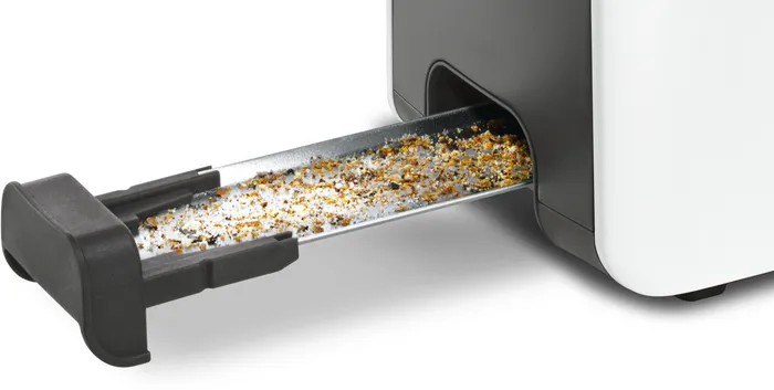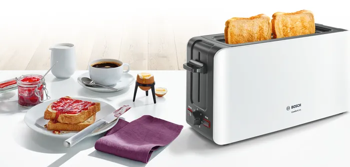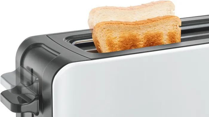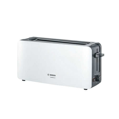 توستر بوش TAT6A001 دارای توان مصرفی 1090 وات بوده و در تک رنگ سفید تولید شده است. یک درگاه برای قرار گیری نان داشته و توانایی توست 2 برش نان در هر عملیات را دارا می باشد. جنس بدنه در این توستر از پلاستیک ساخته شده و وزن آن تنها 2 کیلوگرم است. این خصوصیت باعث می شود به راحتی قابل جابه جایی و حمل و نقل باشد. سیستم گرمایشی استفاده شده در این محصول از نوع المنت سطح بزرگ است، که باعث می شود علاوه بر طول عمر بیشتر دارای عملکرد بهتری می باشد. سیستم کنترل در این توستر از نوع چرخشی است، که برای کاربران با سلیقه کلاسیک می تواند بسیار جالب توجه باشد. سیستم بالا آور متمرکز در این توستر بوش TAT6A001 باعث می شود قطعه نان برشته شده به اندازه کافی بالا آورده شود و استفاده از آن برای شما به سادگی امکان پذیر شود. دکمههای استفاده شده در بدنه این توستر دارای عملکرد های متنوع زیر می باشند: 0) بالا بردن نان 1) توقف آنی با نشانگر LED 2) سیستم کنترل چرخشی با ۶ حالت 3) امکان یخ زدایی با نشانگر LED. سیم برق 90 سانتی متری در این توستر باعث می شود، بتوانید آن را با فاصله بیشتر از پریز برق قرار دهید و طول عمر سیم برق نیز افزایش یابد. وجود پایه ضد لغزش در این توستر باعث عدم جابه جایی ناخواسته آن شده و امکان استفاده از این دستگاه را بر روی سطوح مختلفی فراهم می کند. بهره گیری از حالت عایق سرما در توستر بوش TAT6A001 از ویژگی های مهم آن است، که باعث افزایش طول عمر این وسیله خواهد شد. حالت های متنوع 6 گانه برای توست نان جزء ویژگی های مهم در این توستر که باعث می شود بتواند نان را توست کنید. تکنولوزی استفاده شده در توستر بوش یعنی thick & thin از دیگر مزیتهای مهم در این مدل است. وجود سنسور الکترونیکی توست مداوم نان نیز دیگر ویژگی مهم در توستر BOSCH است.