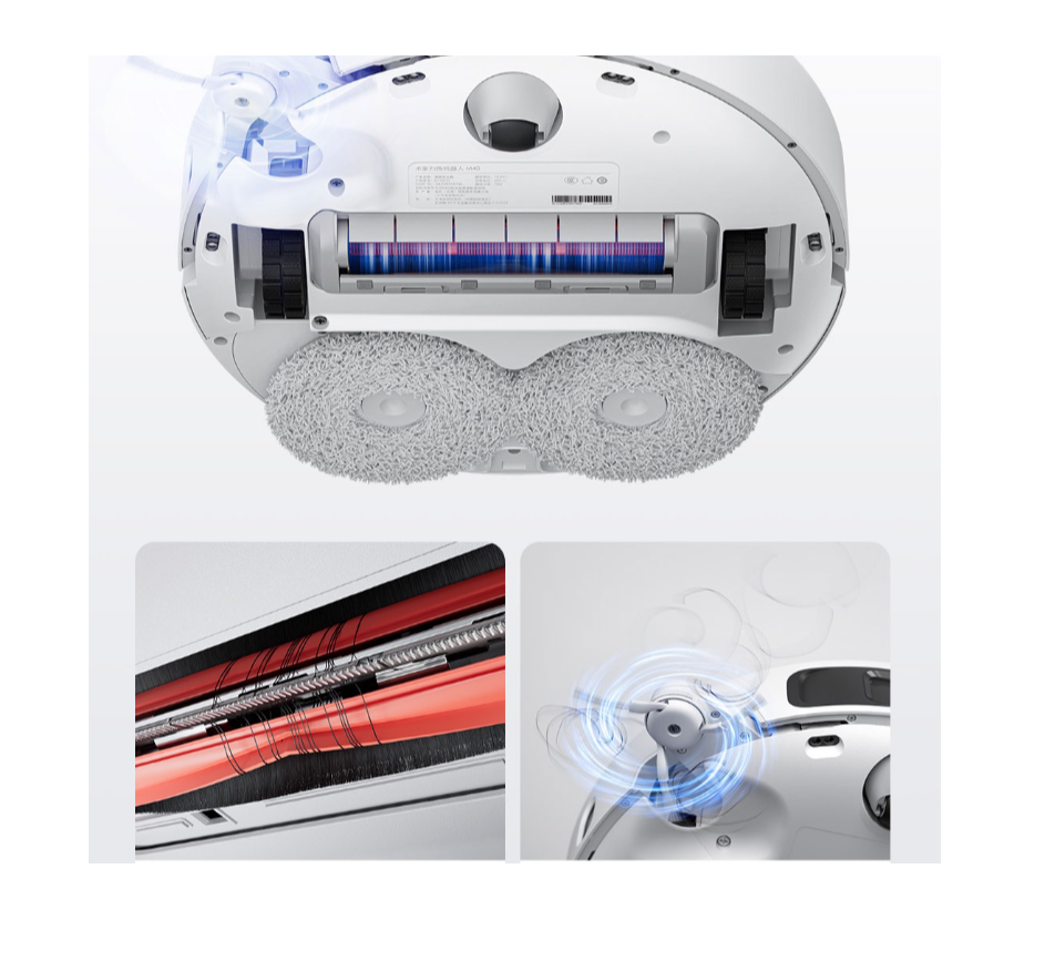یکی از ویژگیهای برجستهی Mijia M40 بازوهای مکانیکی دوگانهی آن است. بازوی اول بهعنوان برس جانبی برای تمیزکردن دقیق گوشهها عمل میکند و بازوی دوم بهعنوان تی مکانیکی برای پاکسازی کنارهها کاربرد دارد. این بازوهای جمعشونده انعطافپذیری لازم برای تمیزکردن محیطهای مختلف را فراهم میکنند. شیائومی این بازوها را بیش از ۵۰۰ هزار بار آزمایش کرده است تا اطمینان حاصل کند که در طولانیمدت بهخوبی عمل خواهند کرد.
