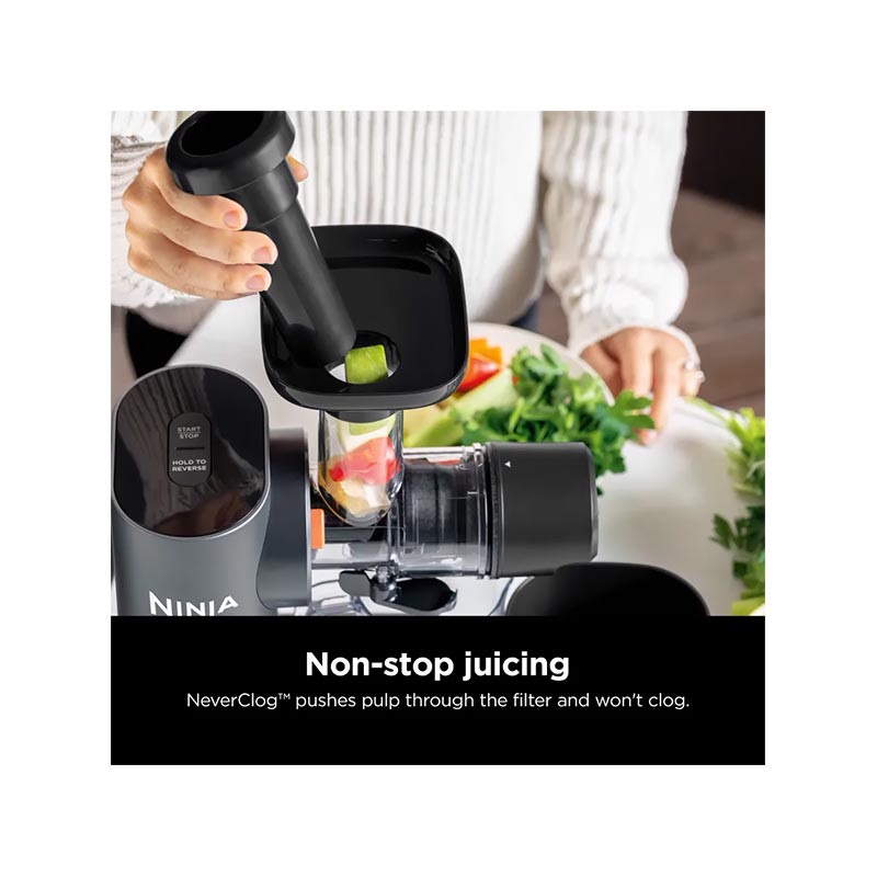 عصاره گیر حرفهای نینجا مدل JC151 از قدرت و نیروی بالایی برخوردار بوده و از طریق مواد سخت برای آبمیوه گیری قوی و بدون وقفه، مهندسی شده است. بر روی بدنه دو دکمه Start/Stop و Reverse به چشم می خورد و امکان چرخش معکوس هنگام آب گیری را نیز دارد. بعد از آب گیری می توانید دکمه REVERSE را بزنید تا تمام باقی مانده مواد را هم آب گیری کند. با این کار نوشیدنی غلیظ تری را تحویل تان می دهد.