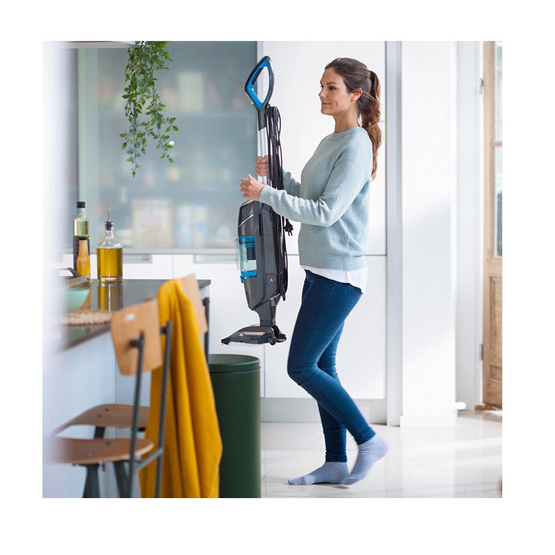 بخارشوی و جاروبرقی بیسل مدل 1977E محصولی بسیار کارا و منحصربهفرد بوده که انتخابی بسیار ایدهآل و جذاب برای انجام فرایند نظافت محیط منزل و یا محل کار شما به حساب میآید. این محصول 3 در 1 قادر است فرایندهای نظافتی متنوعی را به انجام برساند و طیف گستردهای از نیازهای مربوط به نظافت را برطرف کند. طراحی بسیار ارگونومیک و خوش دست محصول در کنار جلوه ظاهری زیبای آن از یک سو و عملکرد قدرتمند و کارای آن از سوی دیگر اِلمانهای مثبت این دستگاه بهشمار میآید. به کمک این محصول قادر به شستشو و در عین حال جاروکشیدن محیط موردنظر خود خواهید بود. مکانیزم عملکرد دستگاه از طریق ترکیب دو بخش مربوط به بخاردهی و مکش مربوط به جارو این امکان را مهیا میکند تا با توانایی بالا اقدام به نظافت 99.9% از میکروبها و باکتریهای موجود در محیط موردنظافت کرده و همچنین در زمان انجام فرایند شستشو و نظافت صرفهجویی چشمگیری کنید. از طرفی استفاده از آب شهری در داخل مخزن آب 0.4 لیتری این دستگاه و همچنین امکان استفاده از مواد شوینده در حین انجام فرایند موجب افزایش میزان دقت در شستشو خواهد شد و نتایج رضایتبخشتری را در اختیار شما قرار میدهد. وجود فیلتر داخلی در مخزن خیال شما را بابت ایجاد ناخالصی و رسوب راحت میکند. وجود این فیلتر موجب افزایش طول عمر دستگاه و حفظ میزان بازدهی آن خواهد شد. مخزن دیگر این بخارشوی و جاروبرقی بهمنظور جذب زباله و گرد و غبارها و حتی مایعات تعبیه شده که با امکان تفکیک، به راحتی قابلیت نظافت و استفاده مجدد را خواهد داشت. هوای مازاد ناشی از مکش زبالهها و گرد و غبار از طریق عبور از فیلترهای تعبیه شده بر روی محفظه مخزن، عاری از هرگونه مواد حساسیتزا شده و به محیط باز میگردد که این امر یک امتیاز ویژه برای افراد مبتلا به آلرژی قلمداد میشود. لازم به ذکر است که تمامی بخشهای مربوط به فیلترهای دستگاه قابل تفکیک و نظافت هستند. توان مصرفی 1600 واتی این بخارشوی و جاروبرقی را برای انجام فرایند نظافت با بهترین نتیجه ممکن کاملا مجهز کرده است. مدت زمان داغ شدن و آماده شدن دستگاه برای انجام فرایند بخاردهی تنها 30 ثانیه است. انجام عملکردهای خاموش و روشن کردن دستگاه و نیز تعیین میزان قدرت بخارشوی از طریق کنترلکنندههای دکمهای تعبیه شده بر روی قسمت بالایی دسته محصول بهانجام میرسد. برخورداری از کابل 7.6 متری میزان شعاع حرکتی بالایی را با هر بار اتصال به پریز، به این بخارشوی و جاروبرقی بخشیده است. امکان چرخش 180 درجه سری و همچنین قابلیت جدا شدن سری با یک دکمه دیگر ویژگیهای بخارشوی و جاروبرقی بیسل مدل 1977E محسوب میشوند.